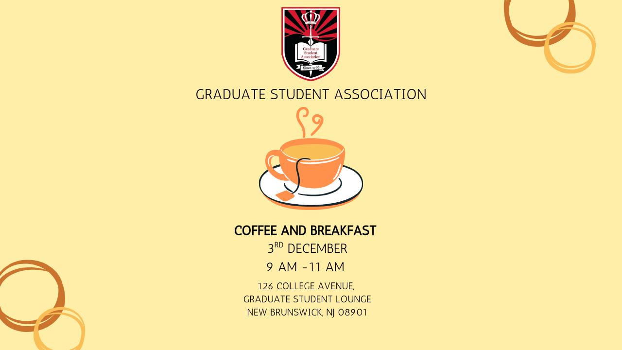 The Graduate Student Association (GSA) invites all graduate students to join us for our final Coffee & Breakfast event of the semester. Take a moment to unwind, enjoy complimentary coffee and breakfast, and connect with fellow graduate students before the end-of-semester rush begins.